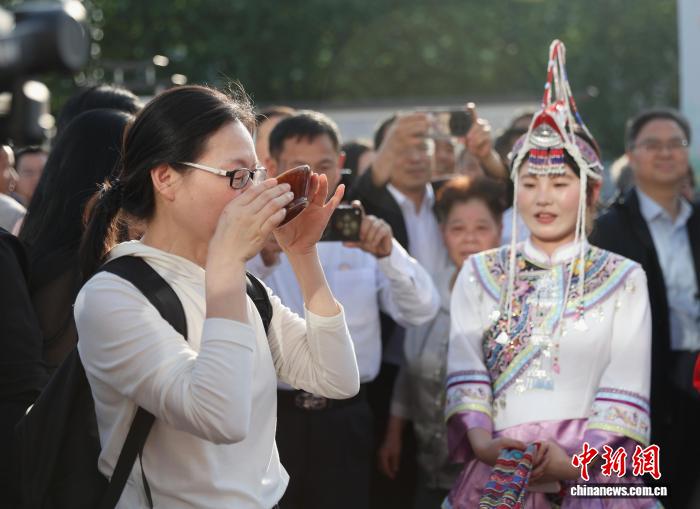 图为游客品尝畲族迎宾酒。中新社记者 刘占昆 摄