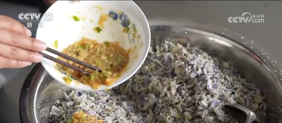 控干水分后,加入适量面粉,轻轻翻拌至每个花瓣裹上薄粉,再放入少量猪肉丁。拌好的葛花均匀铺在蒸屉上,大火蒸8—12分钟即可。蒸好的葛花趁热倒出,用筷子轻轻抖散,把蒜末、盐、香油等料汁按比例调和,搅拌均匀,鲜香四溢。不仅仅是鲜蒸葛花,这段时间葛花饼、葛花汤等多种春日限定美食,也相继登上皖北居民的餐桌。在这每一道葛花美食的背后,都是皖北人对春日的热爱,对自然馈赠的珍视。