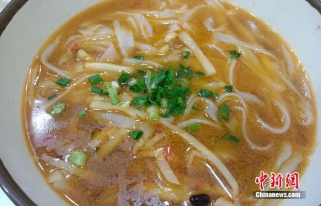 圆粉用大米磨浆挤压成型。用牙齿轻轻咬断,感受其爽滑Q弹,因为体型较大,圆粉大多可久泡不烂。