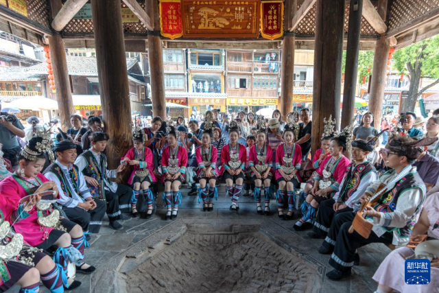4月20日,肇兴侗寨一家餐馆的员工在给游客弹唱侗族琵琶歌。