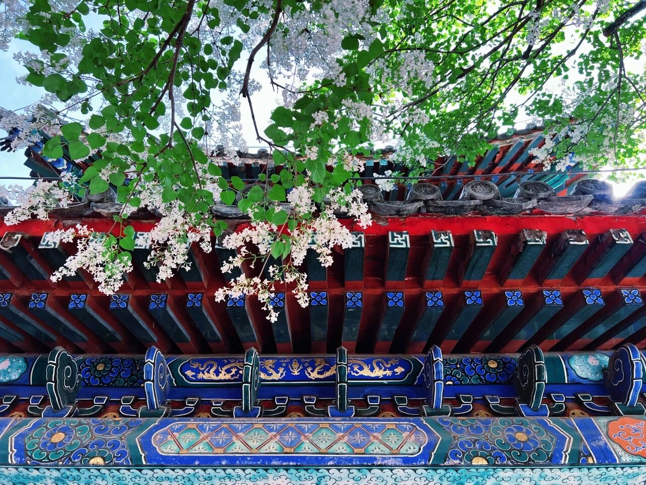 作为北京地区古丁香资源最为丰富的寺院之一,戒台寺现有丁香1103株,其中树龄200年以上的古丁香达20余株,更有17株为乾隆皇帝御赐,从畅春园移栽而来,在京城实属罕见。这些古丁香或紫或白,分布在后花园、钟亭院、地藏院、牡丹院、大雄宝殿前后等各处,与红墙灰瓦、古松奇柏相映成趣,将千年古刹的禅意与春日的柔美完美融合。