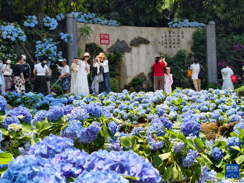 4月25日,游人在广西南宁市青秀山风景区绣球谷赏花游玩。
