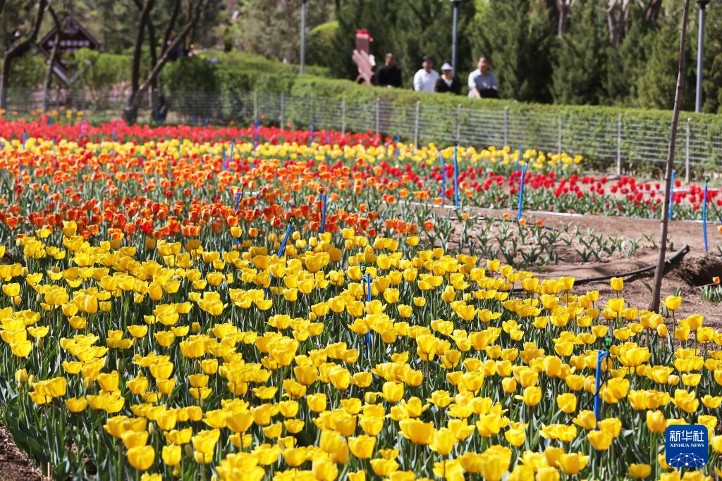 4月25日,市民在甘肃省定西市安定区一处公园内赏花游玩。