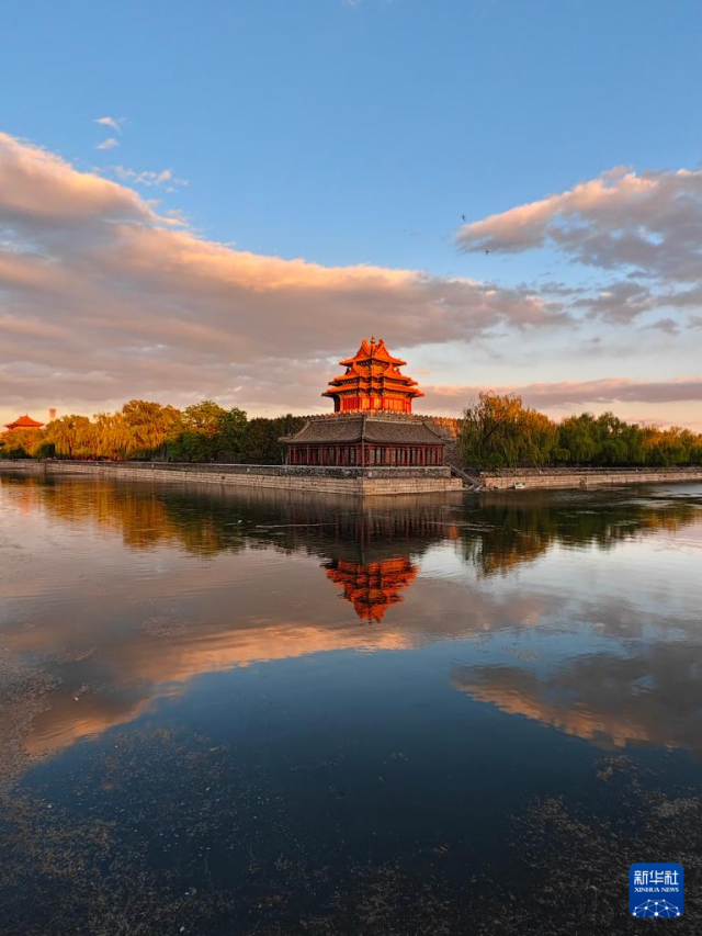 4月27日,暮色中的故宫角楼景色如画,引人入胜。