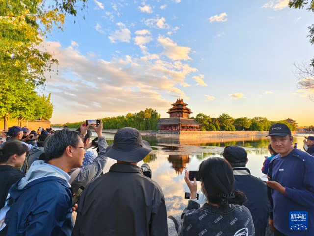4月27日,游客欣赏故宫角楼(手机照片)。