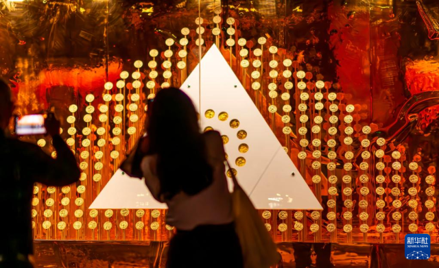 观众在拍摄海昏侯墓出土的385枚饼形金(4月29日摄)。