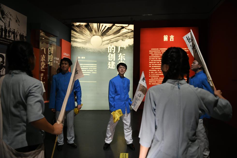 广东省博物馆相关负责人介绍,围绕“红色热土 不朽丰碑——中国共产党领导广东新民主主义革命历史展”内容,该馆选取“五四运动在广东”“中共广东支部正式成立”“刑场上的婚礼”“中央红色交通线”以及“广州解放”5个场景,通过“展览+演艺”的模式,结合展厅空间设计,在展厅还原可感可触的史实,带领观众置身于那个觉醒的年代。沉浸式导赏活动时间将按照博物馆排期于3号展厅举行,时长共50分钟。