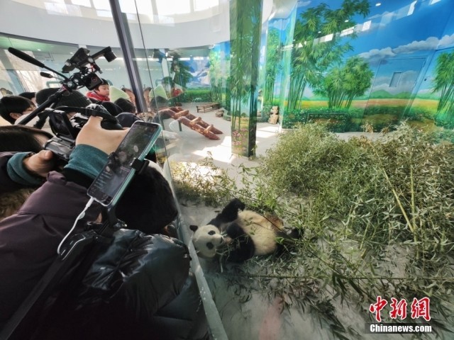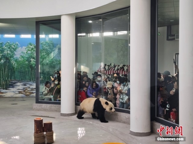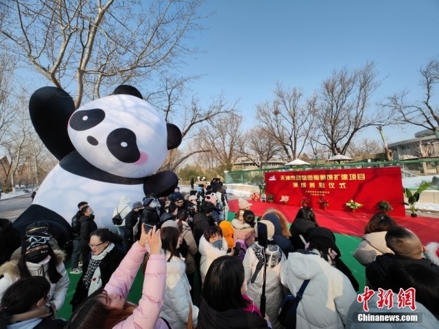 1月18日,天津市动物园熊猫馆扩建完成正式对公众开放,民众前往熊猫馆参观。中新社记者 佟郁 摄