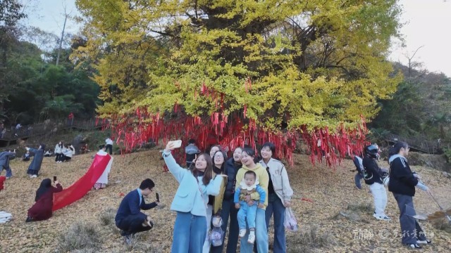 连日来,贵州省仁怀市的千年古银杏群披上“金装”,迎来最佳观赏期,单日最高接待量突破40000人次。