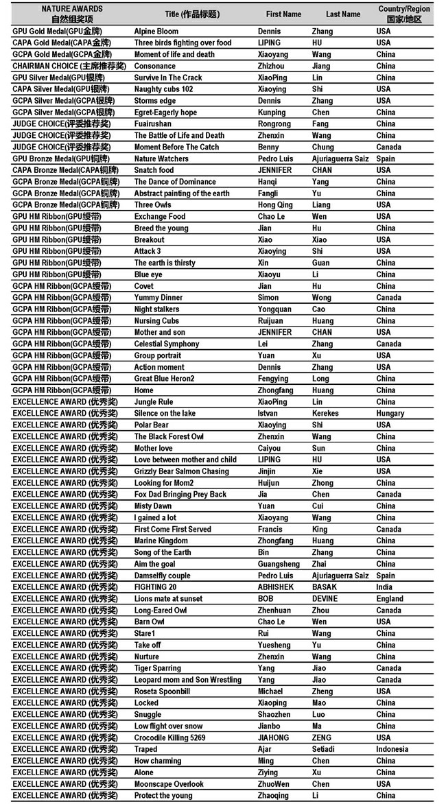 全球华人摄影联合会GCPA金牌 (自然组)