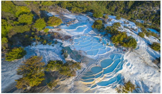 白水台,这片位于云南省迪庆州香格里拉市三坝乡白地村的神奇土地,是滇西游览胜地的代表,更是纳西族文化发祥地之一,自古便有“不到白地朝圣,不算真东巴”的说法。含碳酸氢钙的泉水慢慢流下,分解为碳酸钙逐渐沉淀,长年累月形成台幔,宛似玉埂银丘。因其独特的自然景观,被誉为“仙人遗田”,纳西语为“巴卜芝”(音译),意为逐渐长大的莲花,面积约3平方公里,是我国最大的华泉台地。雪白梯田盛满含有碳酸氢钙的泉水,千百年来日日流淌在这片土地,陪伴着千千万万的纳西子民,以自己美丽独特的身姿守护着一方净土,孕育了一方文化,让人惊艳之余,更加感慨大自然的神奇秀美。游客可以近距离地欣赏这份天造地设的奇景,感受纳西族人民对这片土地的崇敬以及自然与文化的完美融合。